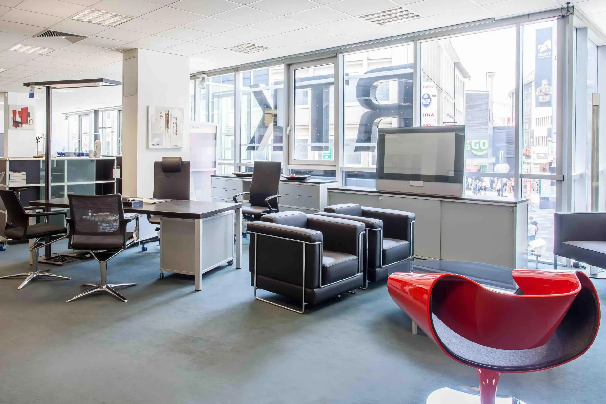 Für Großunternehmen erarbeiten wir ein Konzept, das in das corporate design der Firma passt. Unsere Experten bieten eine einheitliche Formensprache an, die dem Auge des Gesamtbildbetrachters angenehm gefällt. Durch eine breite Auswahl an Materialien, ergonomischen Büromöbeln, Raumaccessoires und Büroausstattung können wir Ihnen eine große Vielfalt anbieten. Aus dieser Vielfalt werden die einzelnen Elemente für Ihre Lounge so ausgewählt, dass sie Ihnen gefallen und sich insgesamt ein runder Gesamteindruck ergibt. Der gemeinsame Planungsprozess, den wir für diese Raumgestaltung anstoßen, wird von vielen unserer Kunden geschätzt. Großunternehmen greifen oft in verschiedenen Städten auf unsere Dienste zurück und auch Privatpersonen nutzen unser Angebot für die Raumgestaltung gerne.