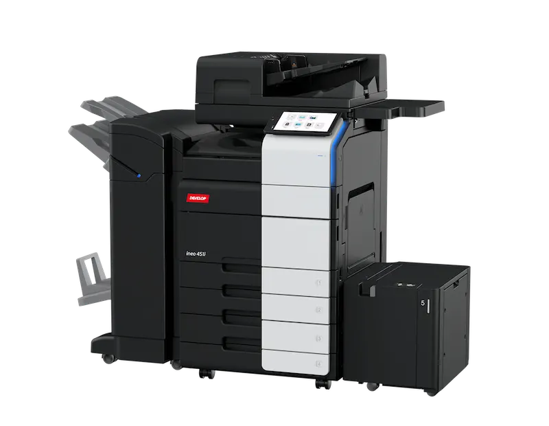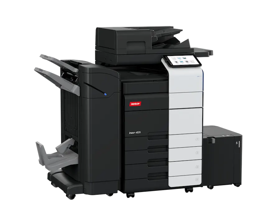 Dieses leistungsstarke A3-Farbsystem sorgt mit schnellen 45 Seiten pro Minute und einer intuitiven Tablet-Bedienung für maximale Produktivität in deinem Büroalltag. Dank modernster Sicherheitsstandards und flexibler Endverarbeitung – vom Heften bis zum Falten – erledigt es anspruchsvolle Aufgaben zuverlässig und sicher.